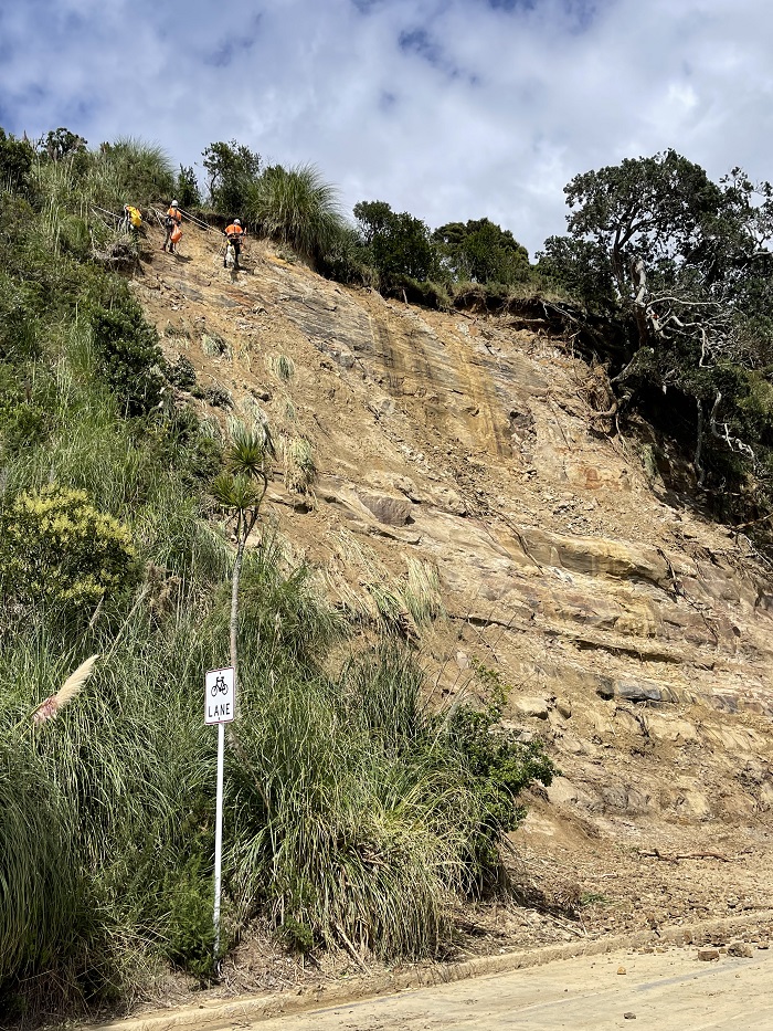 이 사진에서 우리 팀이 어제 완료한 '절벽 확장'을 따르는 Tāmaki Drive를 볼 수 있습니다. 이 지역은 폭우로 인해 수많은 물질이 도로로 휩쓸려가는 대규모 미끄러짐이 발생했습니다. 즉각적인 지질 공학 검사를 통해 더 많은 암석과 재료가 떨어질 위험이 있음이 밝혀졌습니다. 이는 안전을 유지하고 추가 미끄러짐을 방지하기 위해 절벽 스케일링이 필요하다는 것을 의미합니다.