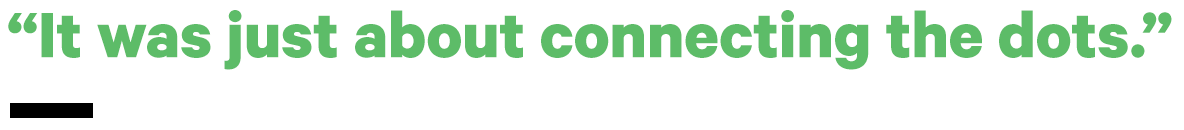 “바카라사이트는 움직이는 부분이 너무 많은 대규모 조직입니다.”라고 그는 말합니다. "이것은 격차를 해소하고 우리가 함께 일하는 방식을 정의할 수 있는 진정한 기회였습니다. 우리의 역량이 얼마나 깊은지 보는 것은 매우 흥미롭습니다. 우리가 점들을 연결할 때 우리는 진정한 잠재력을 발휘하게 됩니다."