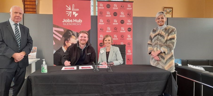 허브는 Glenorchy City Council과 Tasmanian Government의 파트너십이며 현지 구직자를 지역 고용주와 연결하는 것을 목표로합니다.